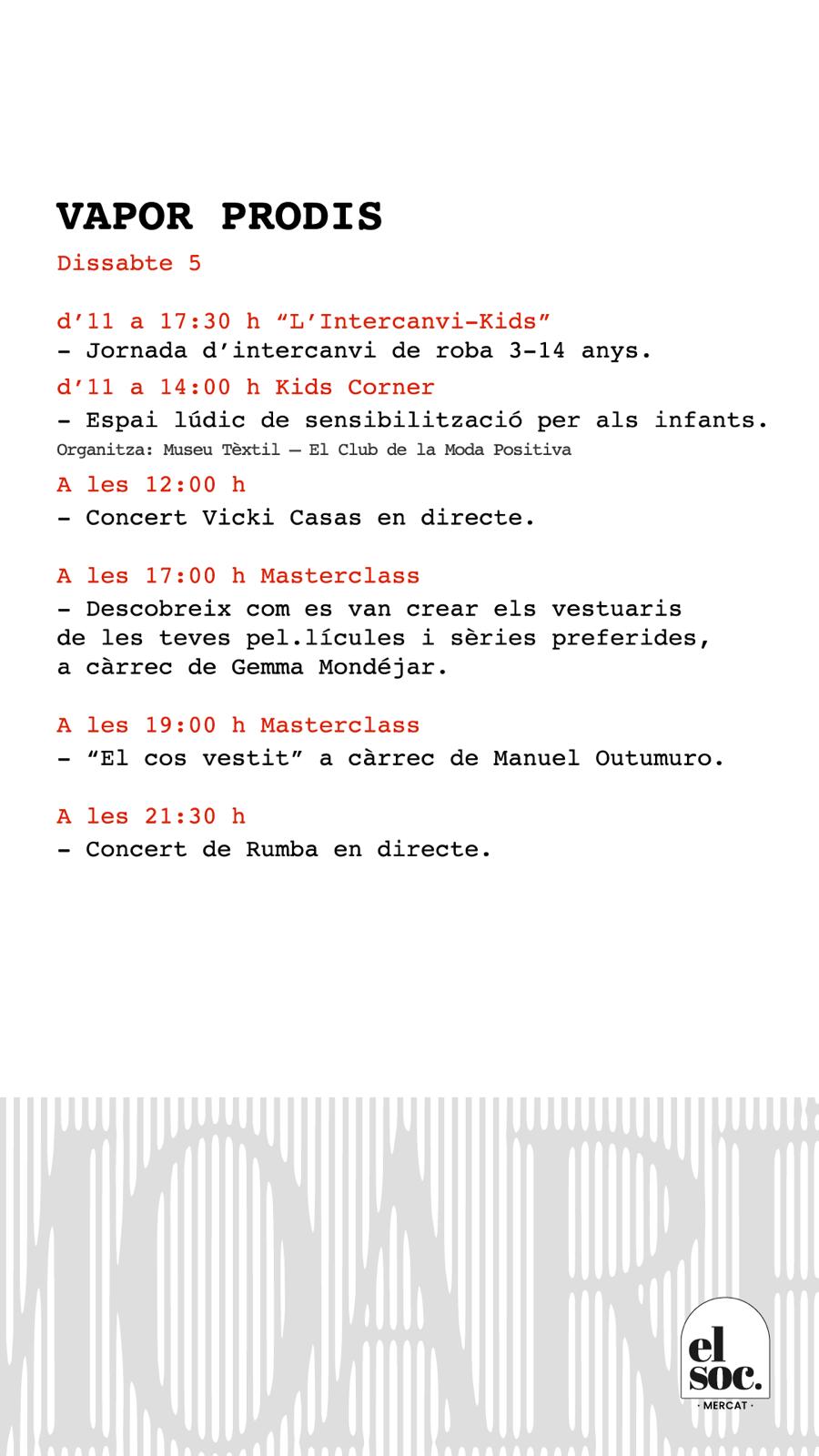 Sábado 5 de octubre, a partir de las 12h, música en directo en El Soc Mercat: MOARÉ, dentro de Vapor Prodis (Terrassa). Versiones pop-rock y canciones propias y venta de mi CD en formato EP. Ven a disfrutar de la música en directo. Te esperamos!!!